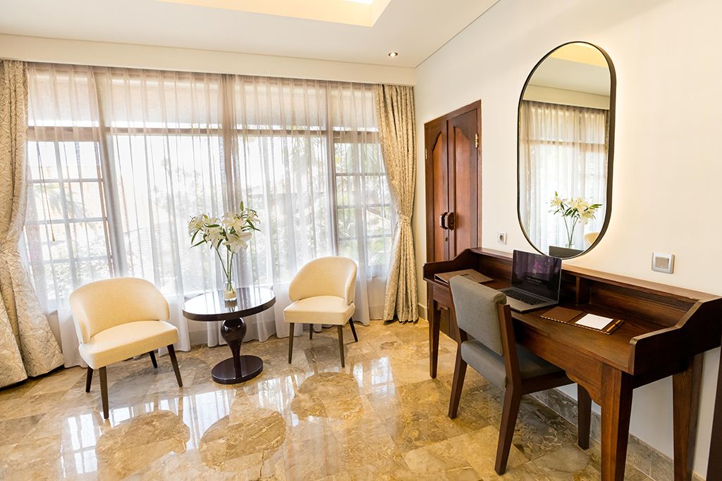 Experience understated elegance in Puri Santrian's Suite Room. Enjoy modern comforts and a tasteful ambiance in this exclusive sanctuary. This suite offers a seamless combination of simplicity and elegance with carefully curated design elements, ensuring a comfortable and sophisticated stay. Experience refined relaxation in our exclusive Suite Room.